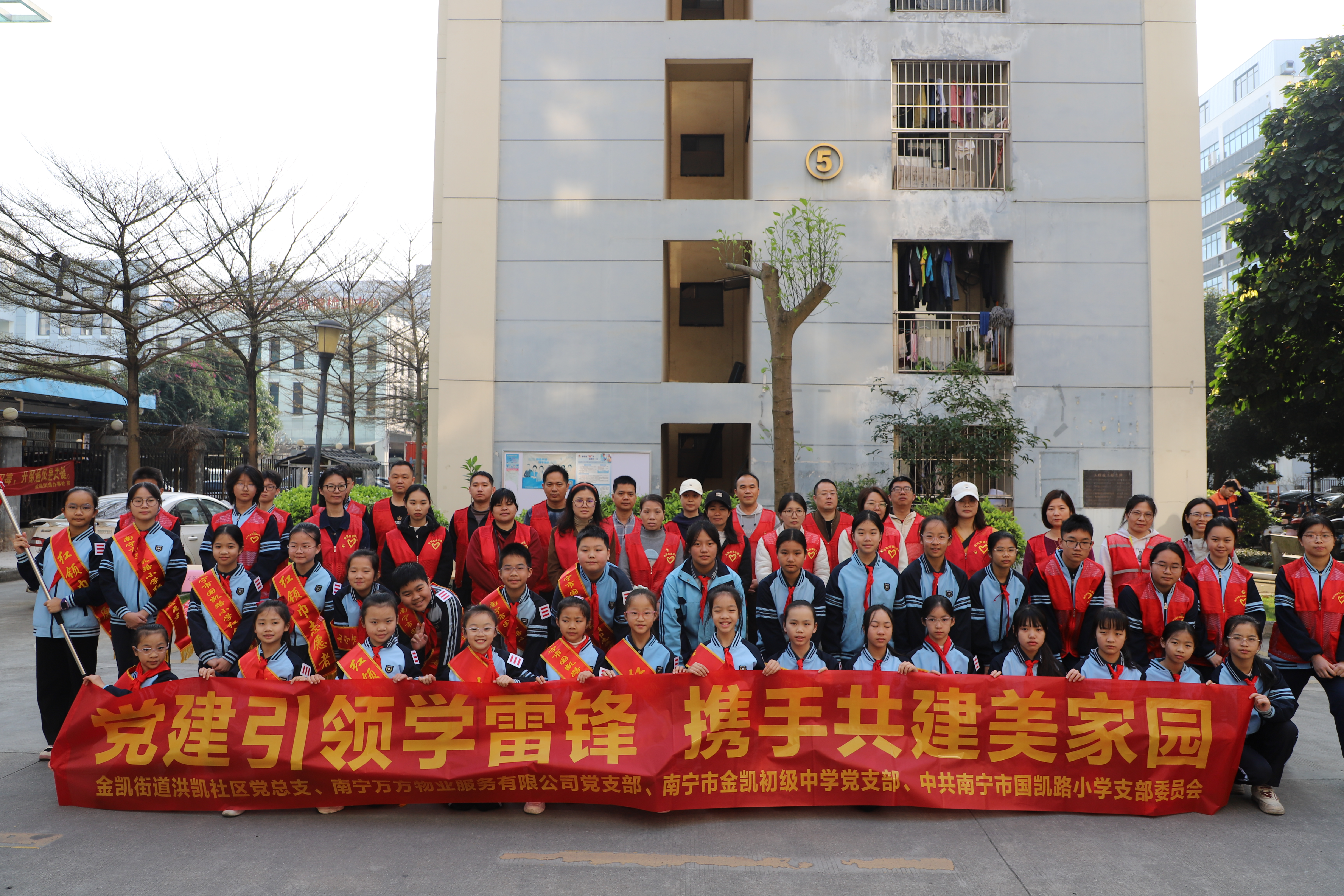 三月春風(fēng)送溫暖,雷鋒精神永相傳。為弘揚(yáng)“奉獻(xiàn)、友愛(ài)、互助、進(jìn)步”的志愿精神,深刻把握雷鋒精神的時(shí)代內(nèi)涵,3月5日,在第63個(gè)學(xué)雷鋒紀(jì)念日,五象經(jīng)開(kāi)產(chǎn)業(yè)投資集團(tuán)黨委聯(lián)合金凱街道洪凱社區(qū)黨總支、南寧市金凱初級(jí)中學(xué)黨支部、中共南寧市國(guó)凱路小學(xué)支部委員會(huì)在金凱工業(yè)園物業(yè)服務(wù)中心共同開(kāi)展“黨建引領(lǐng)學(xué)雷鋒 攜手共建美家園”主題志愿服務(wù)活動(dòng)。